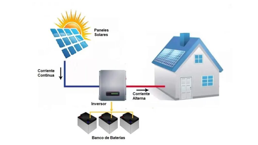 Funciona con baterías de almacenamiento y puede o no estar conectado a la red eléctrica.
